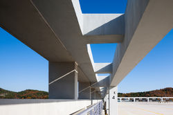 우리는 원거리에서 그리고 속도감을 있는 차에서 바라보는 뷰에 효과적으로 대응하는 입면을 만들기 위해서 깊이가 있는 입면을 생각했다. 깊이는 건폐율 이내에서 가능한 900mm의 깊이가 제안되었다. 그리고 남측과 북측 입면은 깊이가 적은 입면으로 계획하였는데 특별히 두 면이 만나는 모서리 디자인을 공간적인 입면으로 디자인하였다.
