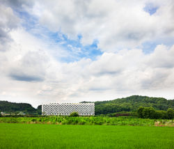외장재는 PC 콘크리트로 결정하였다. 계획 초기부터 콘크리트 회사와 콘크리트의 형태와 결구방법 그리고 모듈화 방식 등을 협의하여 계획을 진행하였다. 우리는 <공장제작 + 현장설치>의 시스템이 공사기간과 시공성 그리고 마감재의 품질향상에 상당히 유리하게 작용하리라 예상했다.